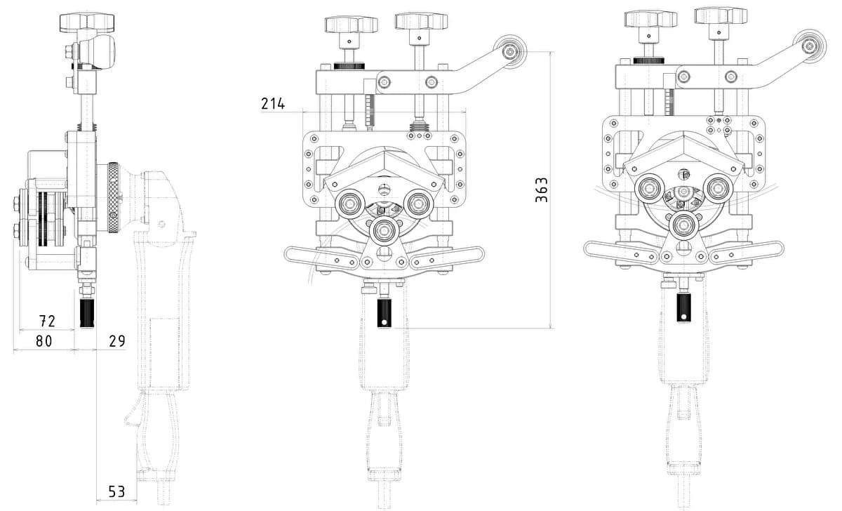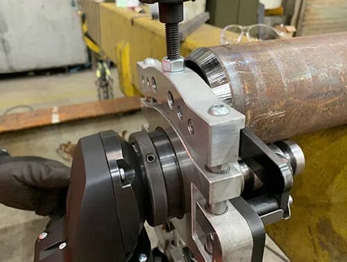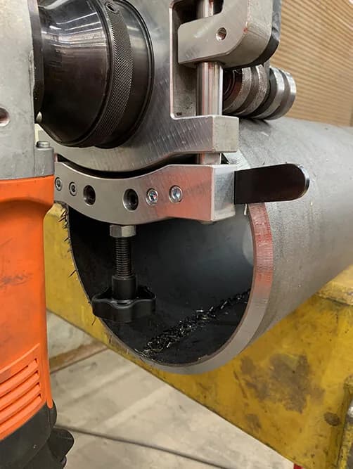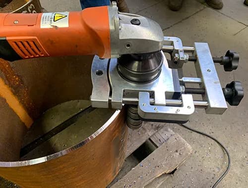 • Благодаря гибкому креплению направляющих роликов, приспособление справляется с любыми неровностями и неточностями по окружности трубы.