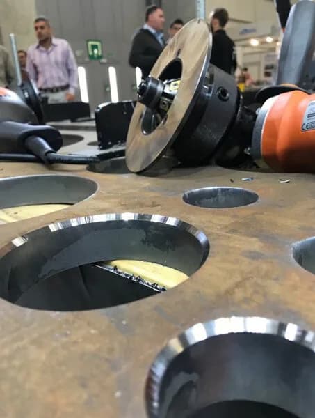 - Благодаря гибкому креплению направляющих роликов, приспособление справляется с любыми неровностями и неточностями по окружности трубы.